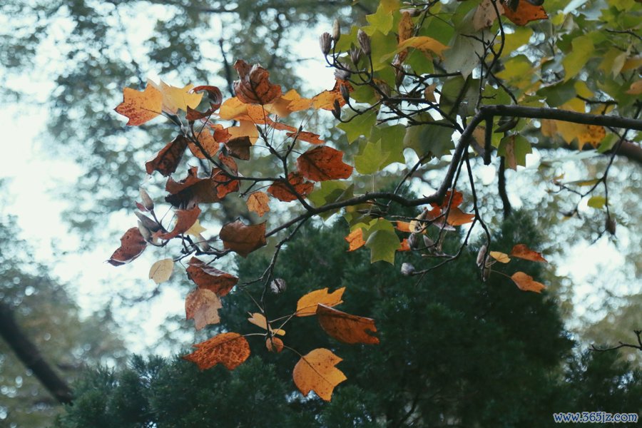 一些树叶还是变色,但大都叶子在绿色时还是衰退。 冯蕊 摄